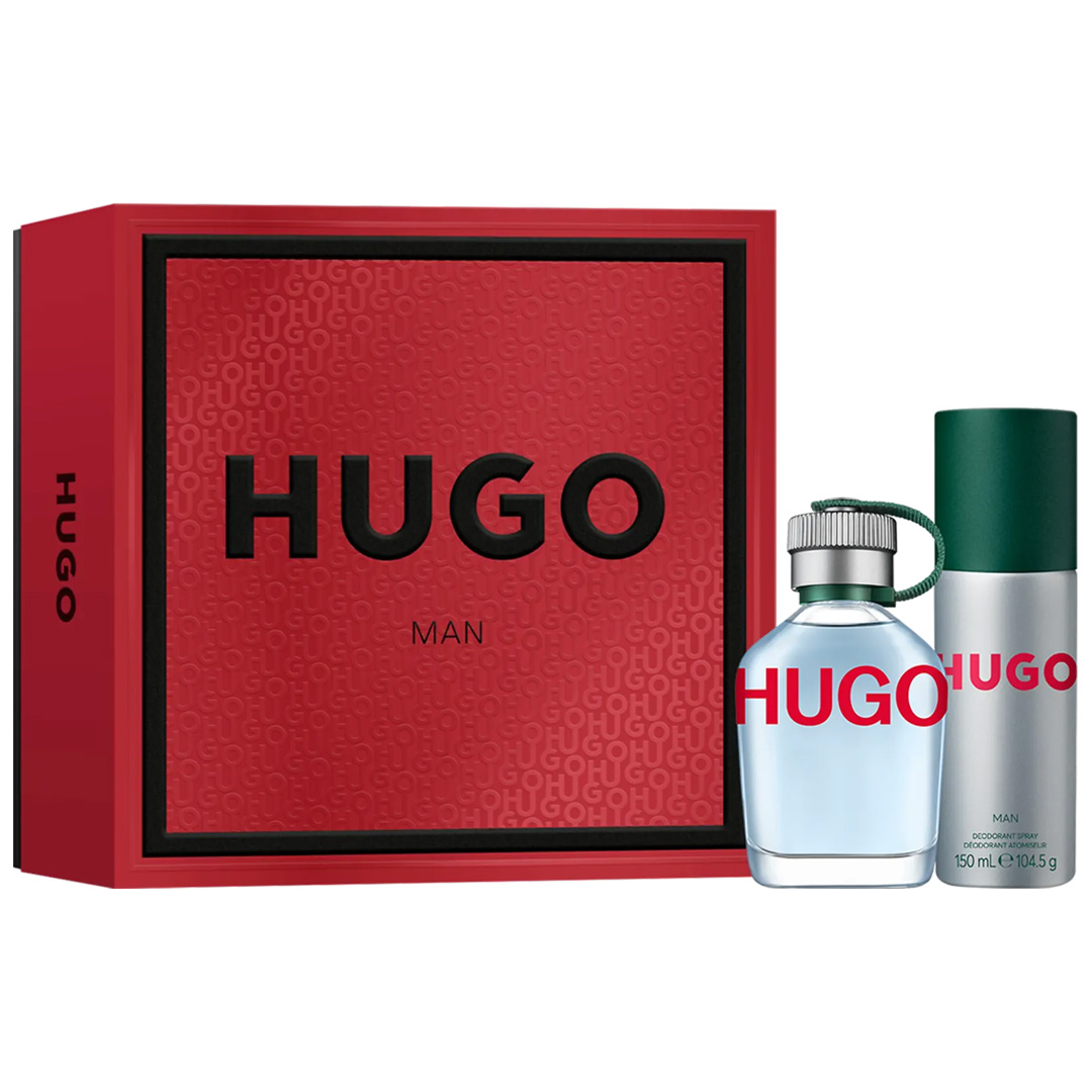 O Kit Coffret Hugo Man Hugo Boss Eau de Toilette + Desodorante contém: 1 Perfume Hugo Man Hugo Boss Eau de Toilette Masculino 75ml + 1 Desodorante 150ml.