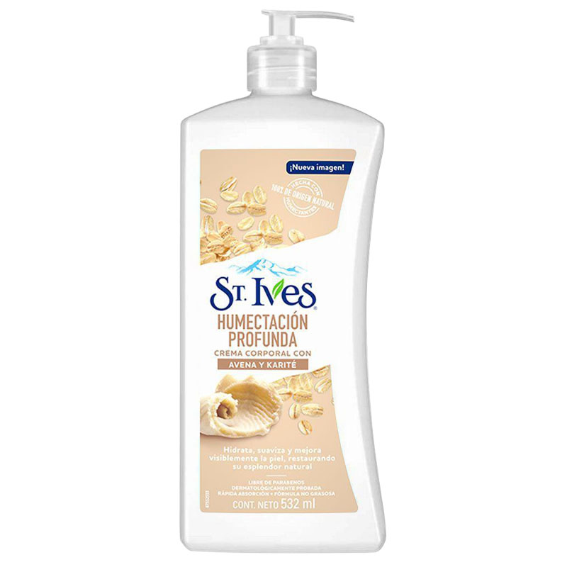 St. Ives Aveia e Karité – Creme Corporal Hidratante com aveia e a naturalmente rica manteiga de Karité, que nutre e hidrata intensamente a pele para o alívio imediato, enquanto trabalha para restaurar sua saúde.
